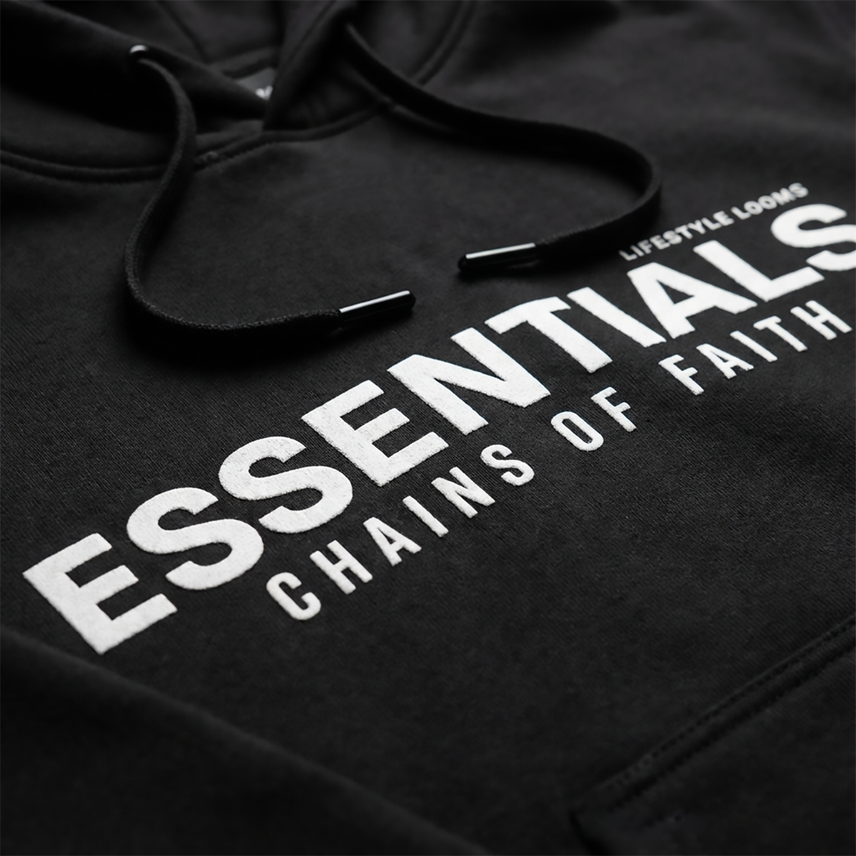 • Stylish Printed Design: Features the bold “ESSENTIALS – CHAINS OF FAITH” print that adds a streetwear-inspired edge to your casual wardrobe.